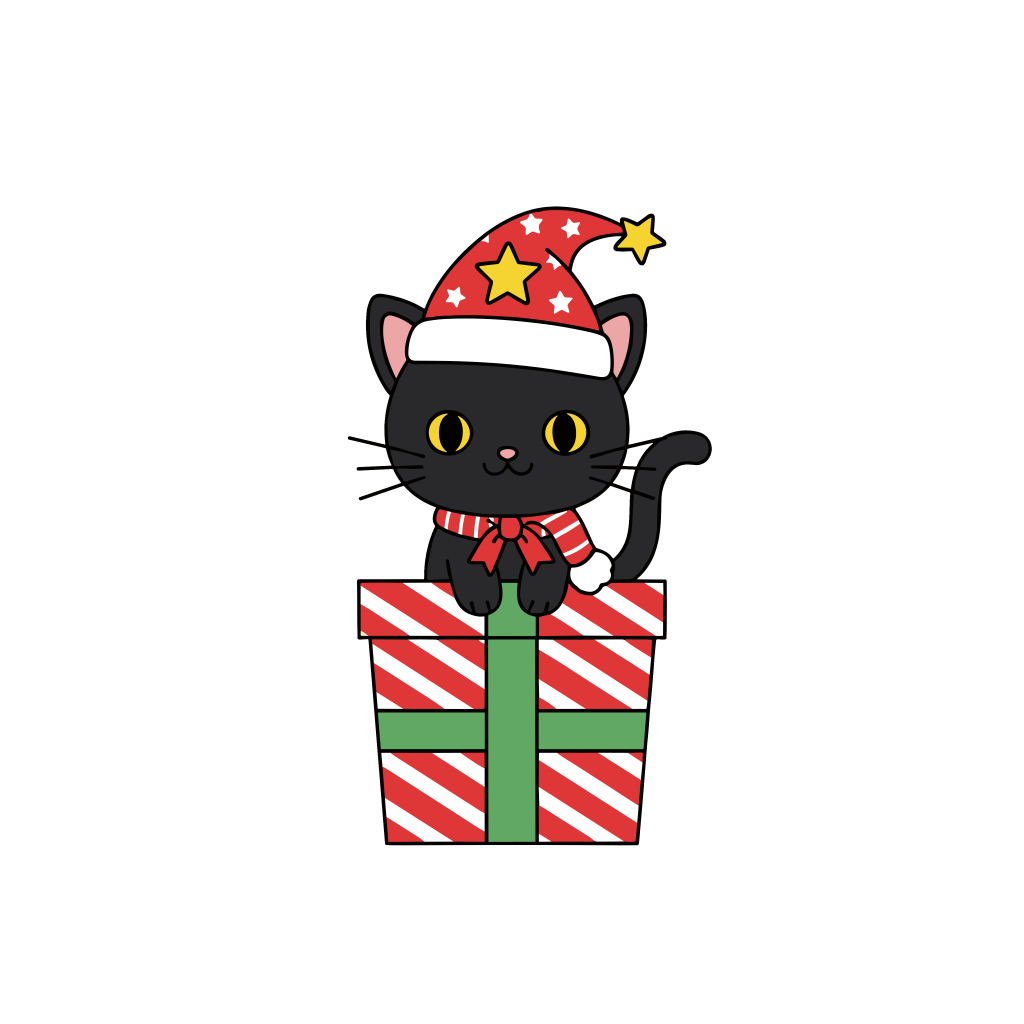 かわいい黒ねこのクリスマスイラスト|簡単・無料で使えるフリー素材・アイコン