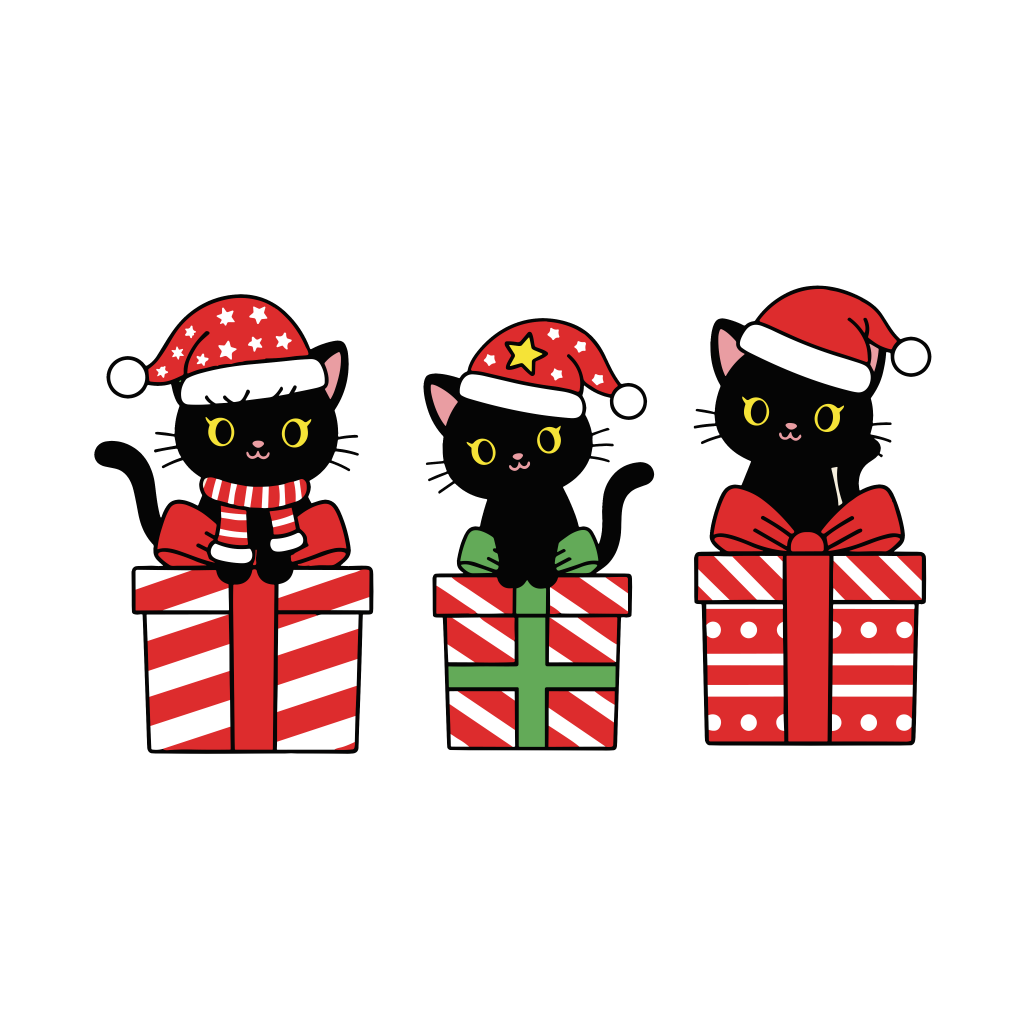 かわいい黒ねこたちのクリスマスイラスト|簡単・無料で使えるフリー素材・アイコン
