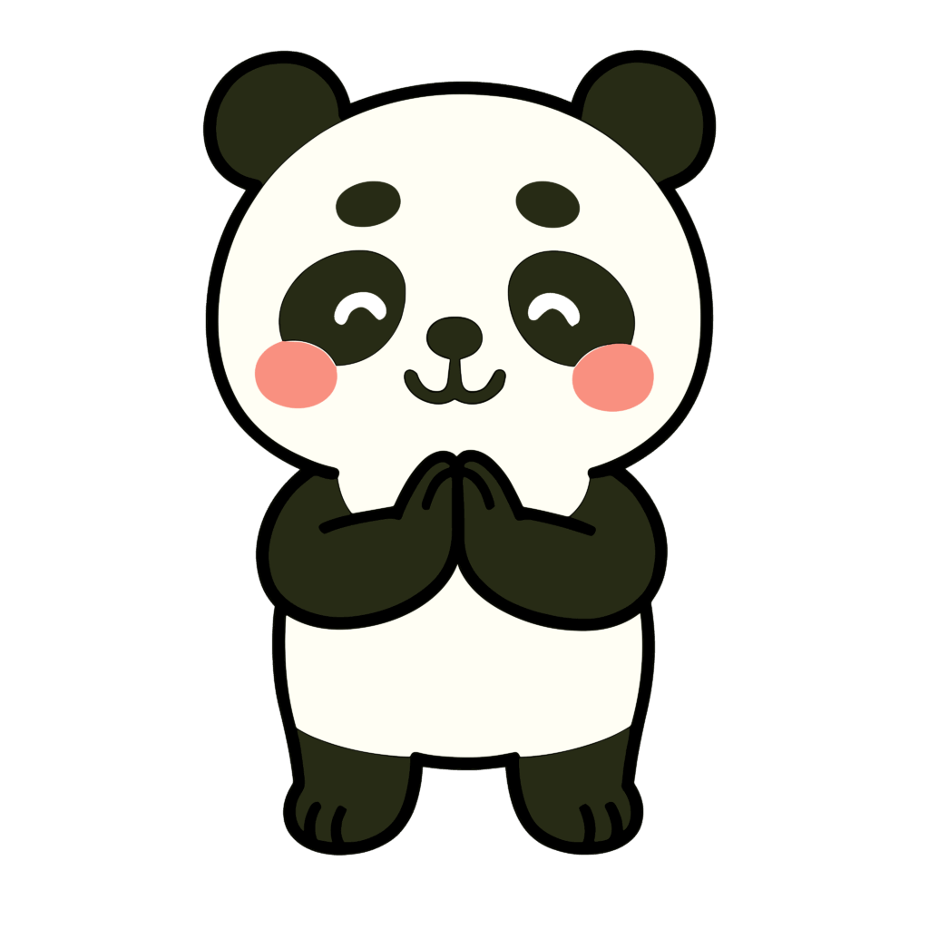 「いただきます」「ごちそうさま」をするかわいいパンダのイラスト
