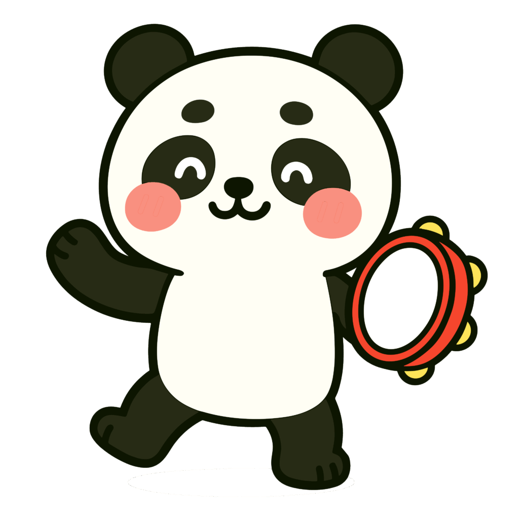 タンバリンをたたくかわいいパンダのイラスト|簡単・無料で使えるフリー素材・アイコン