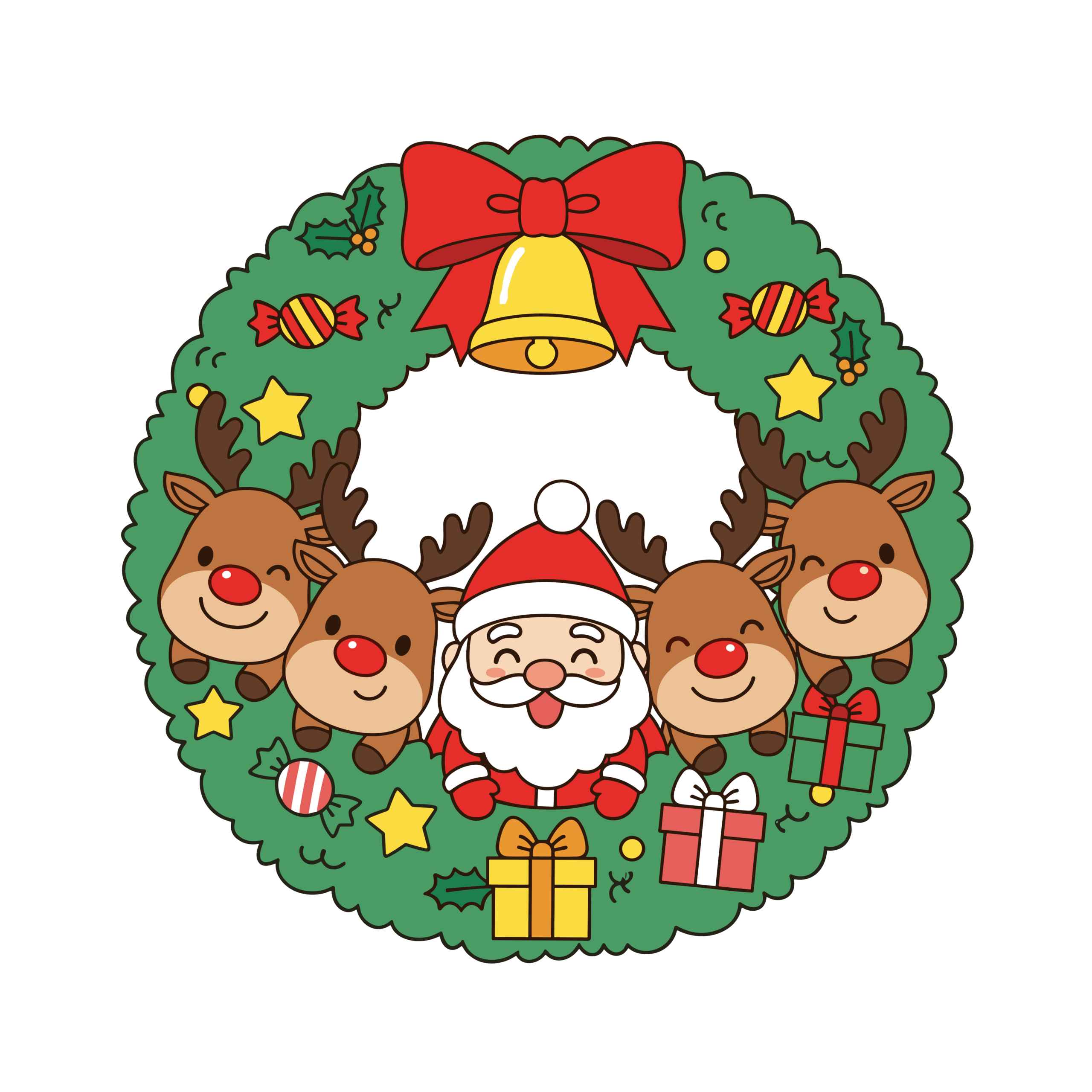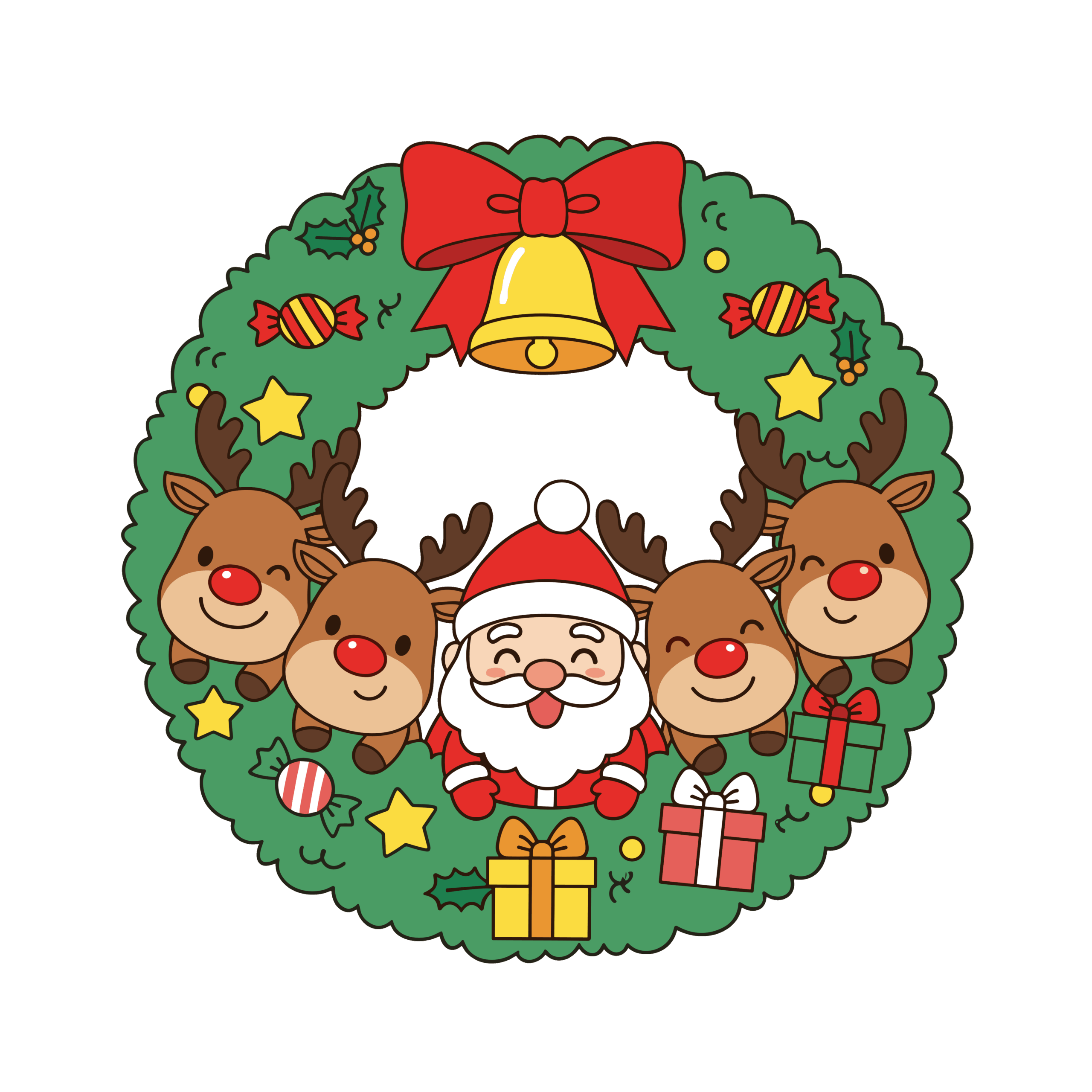 かわいいサンタとトナカイのリースイラスト|簡単・無料で使えるフリー素材・アイコン