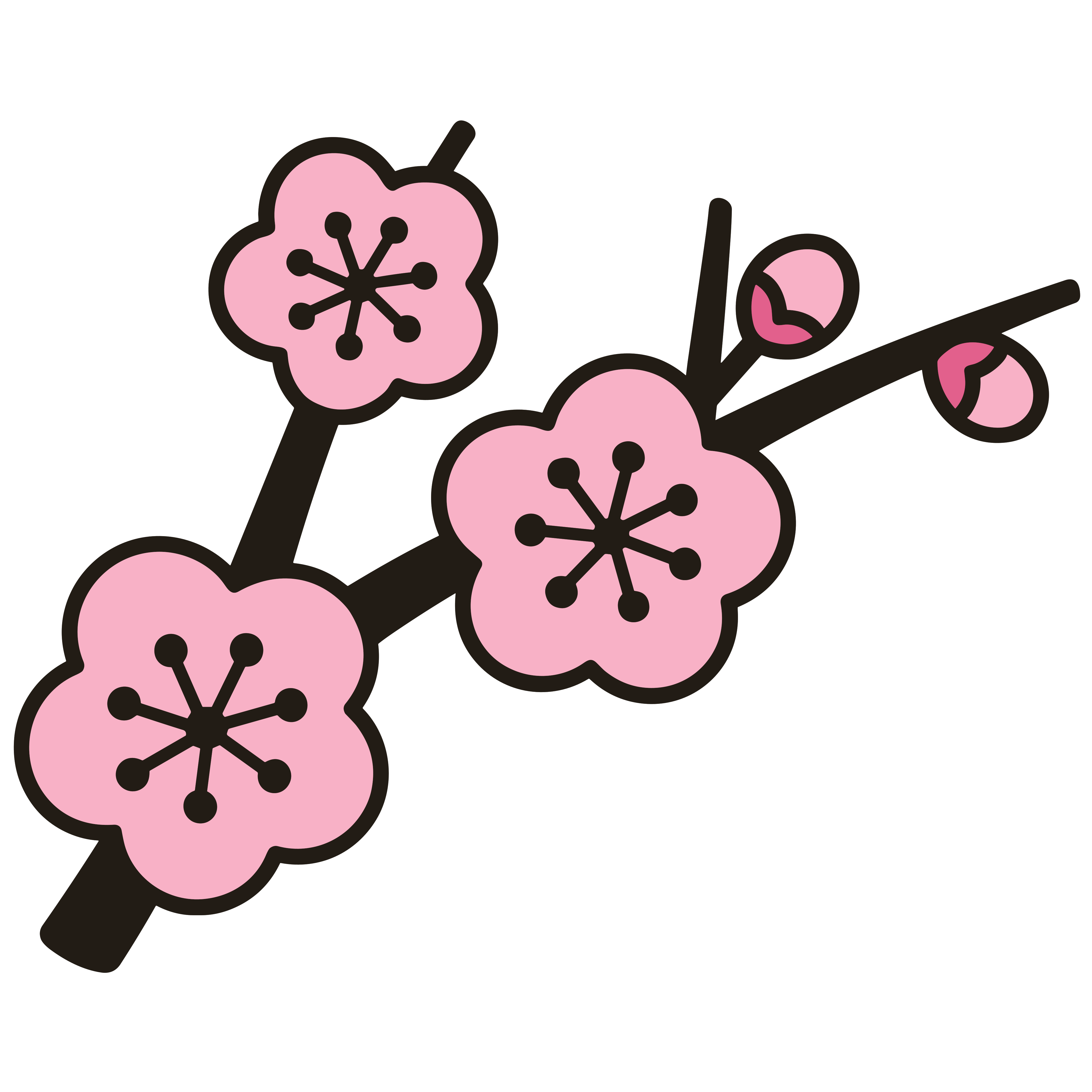 かわいい梅の花の枝のイラスト|簡単・無料で使えるフリー素材・アイコン