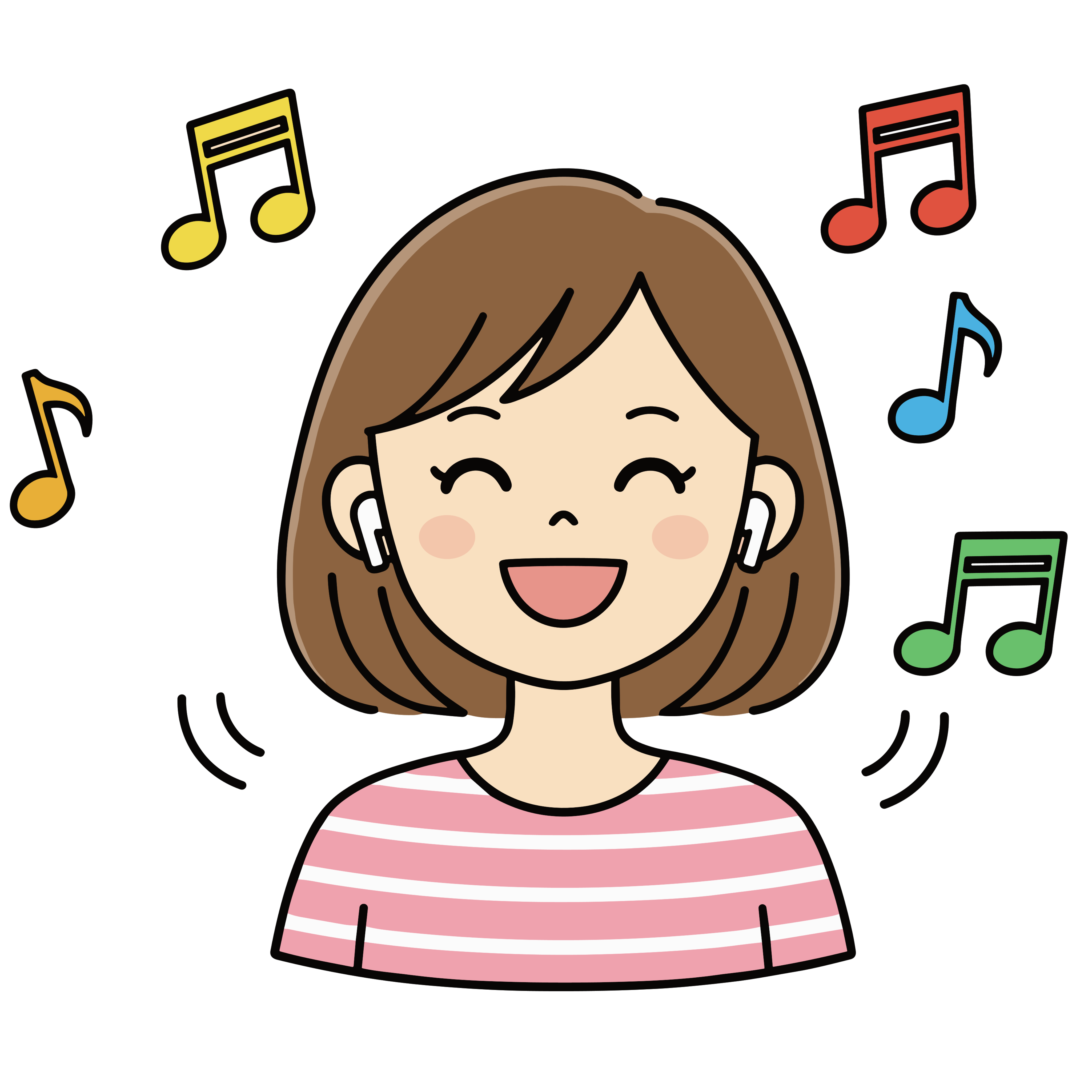 ワイヤレスイヤホンで音楽を聴く女性のかわいいイラスト|簡単・無料で使えるフリー素材・アイコン
