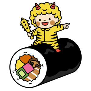 - 赤・青・黄色の三色の鬼でにぎやかな構成