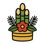 正月に食べられるおせち料理を黒い重箱に詰めたイラストです。定番の和食が分かりやすく描かれており、年始の食卓やおせち特集ページの挿絵として使いやすい無料イラスト素材です。背景透過PNG形式で、さまざまなデザインに自然に使用できます。