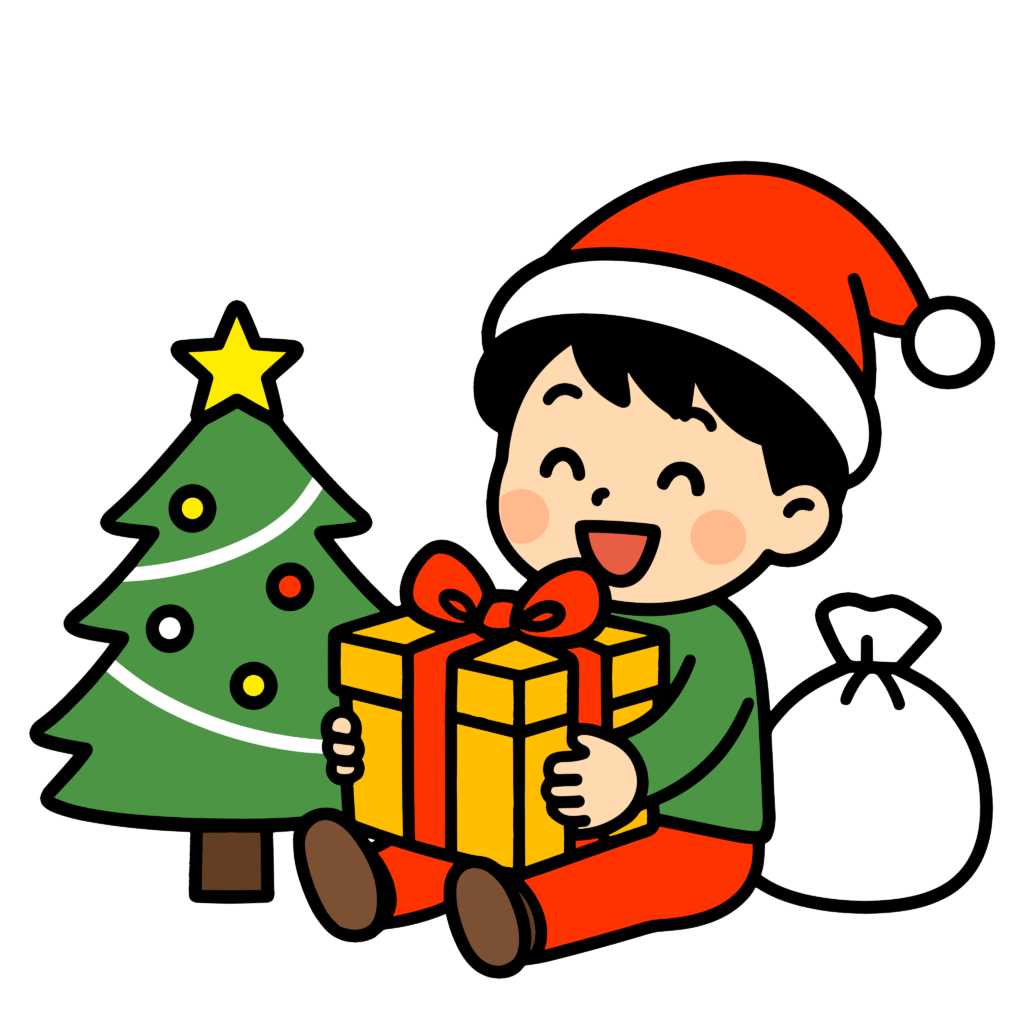 • かわいいこどものクリスマスイラスト。簡単で無料の背景透過素材。ダウンロードしてアイコンにも使えます。