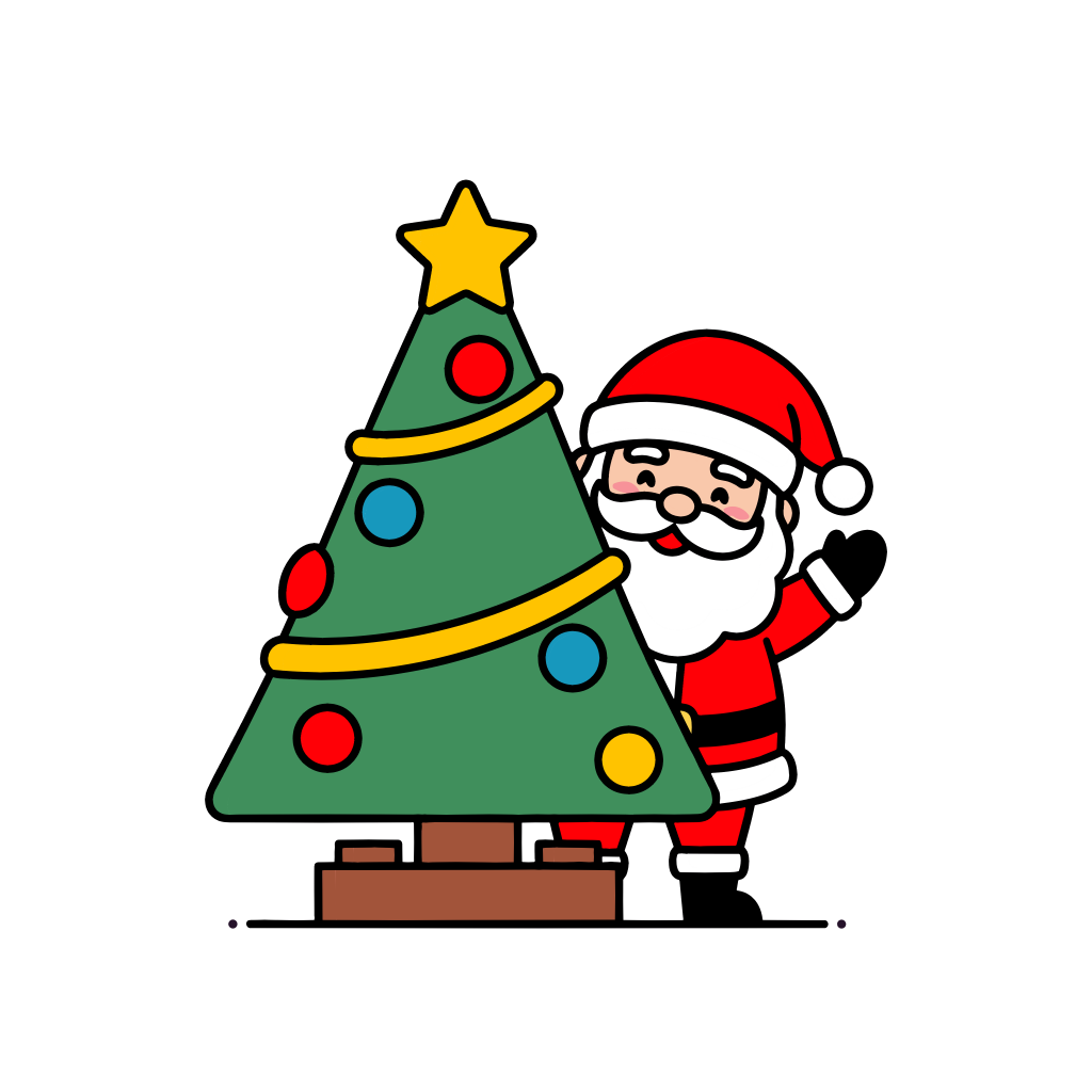かわいいサンタクロースとクリスマスツリーのイラスト|簡単・無料で使えるフリー素材・アイコン